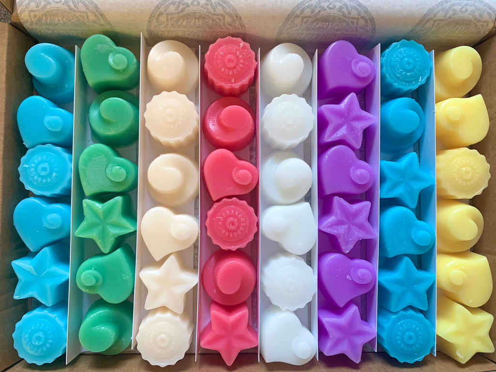 As they are hand poured there may be some variation in size Shapes are assorted. Only high quality fragrances used so the scent is long lasting.