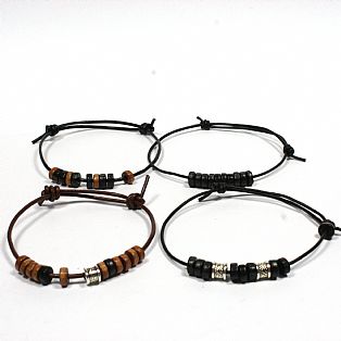Mens / Ladies Brown or Black Leather and Bead Adjustable Tribal Surfer Bracelet / Wristband
