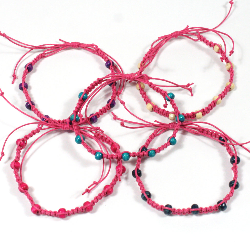 Tribal Hot Pink Macrame and Wooden Bead Wristband Bracelet