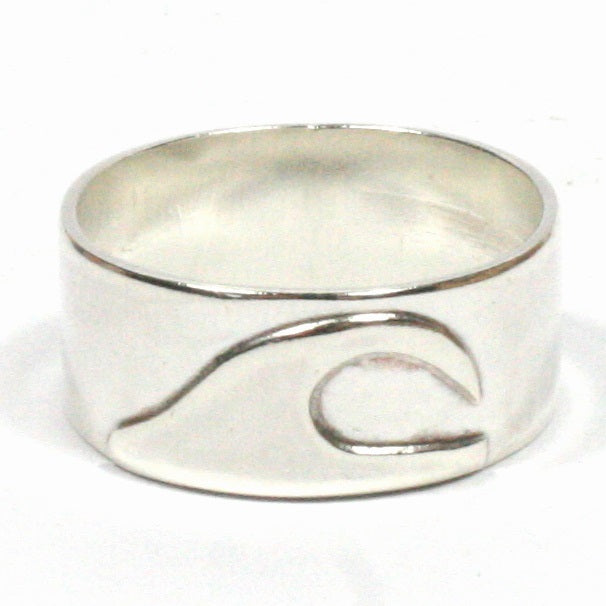 Hand cut silver wave design is soldered ontop of the band giving real texture to the ring.