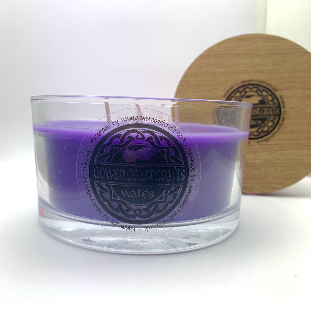 Triple Wick candle jar measures 12.5cm diameter, 7.5cm high