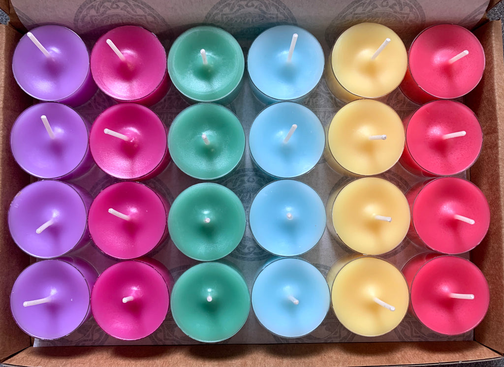 Each pack will contain 24 Tealight Candles each with an approx 4 hour burn time