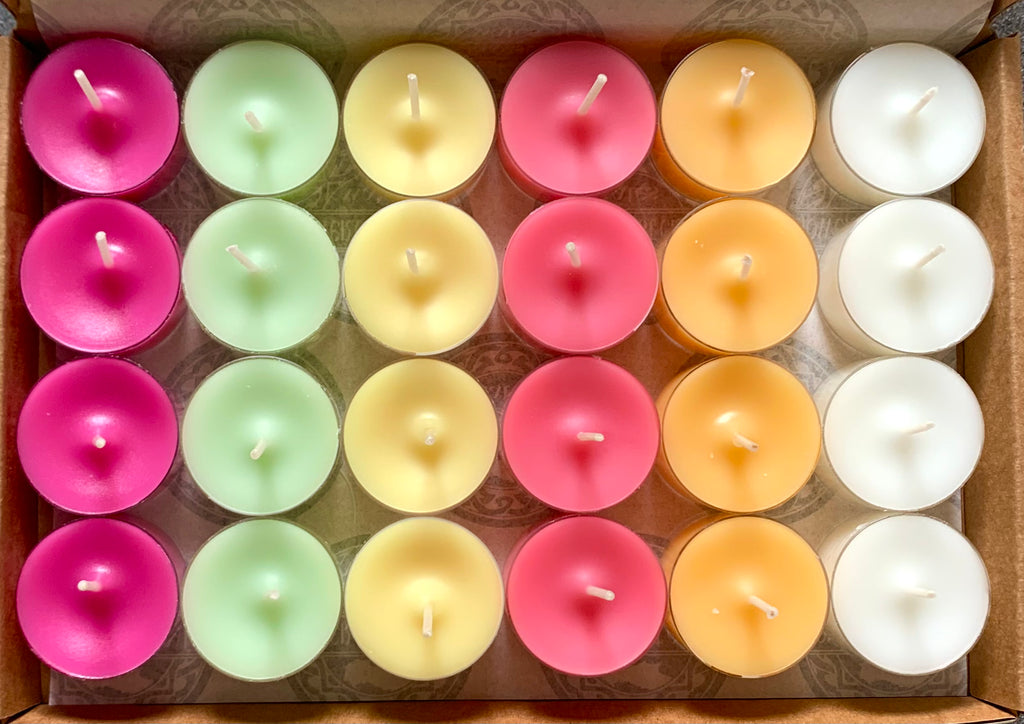 Each pack will contain 24 Tealight Candles each with an approx 4 hour burn time