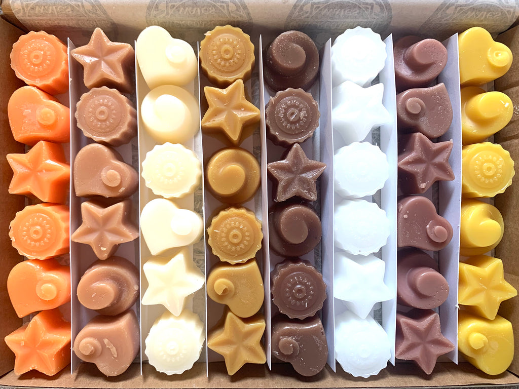 As they are hand poured there may be some variation in size Shapes are assorted. Only high quality fragrances used so the scent is long lasting.
