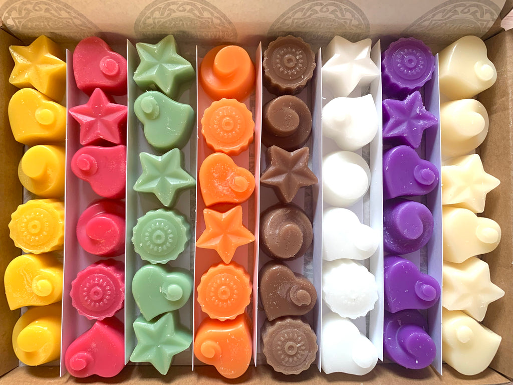 As they are hand poured there may be some variation in size Shapes are assorted. Only high quality fragrances used so the scent is long lasting.