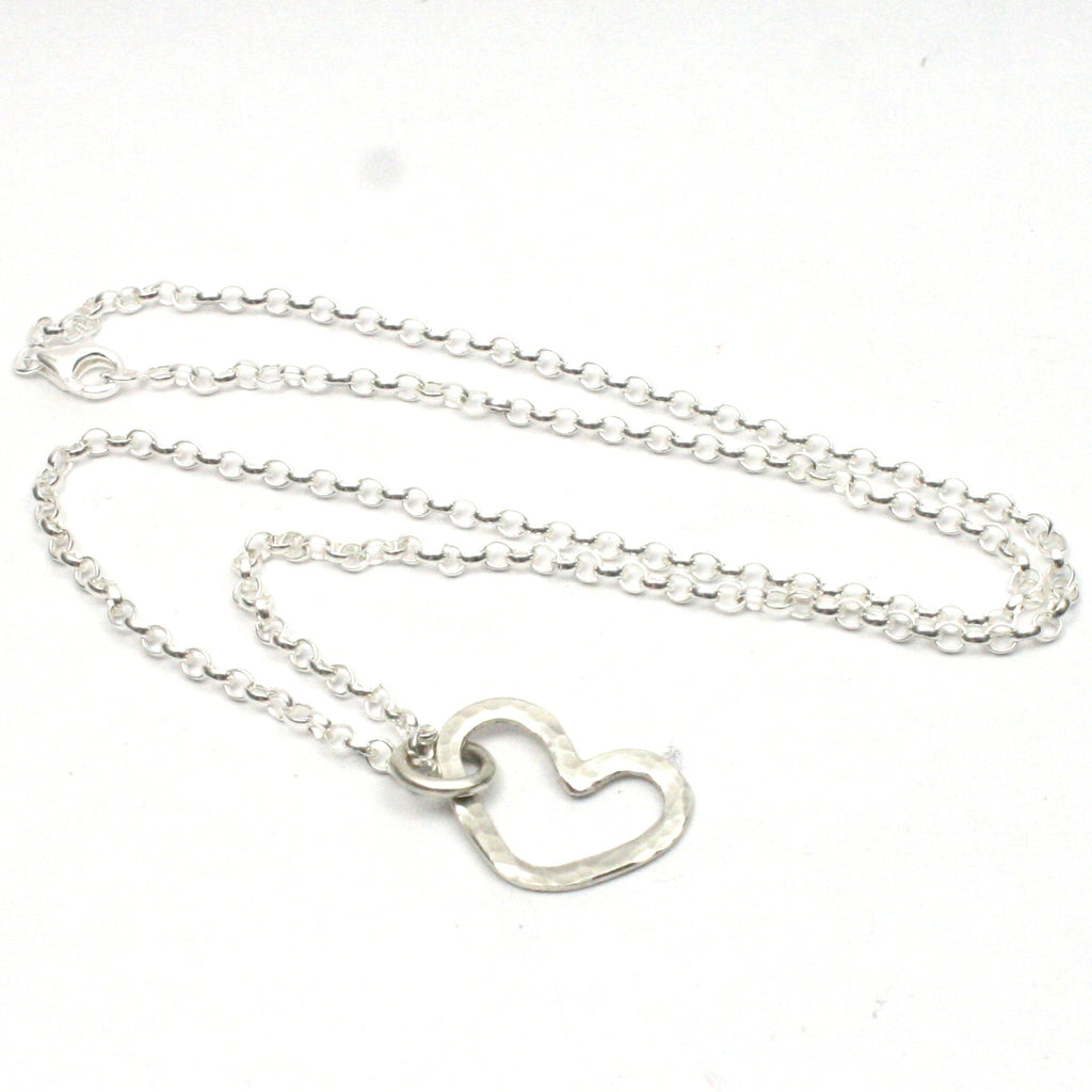 Solid Silver Hammered Heart Necklace