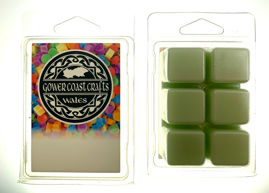 Hand-poured and cruelty free wax melt snap block containing 6 wax cubes