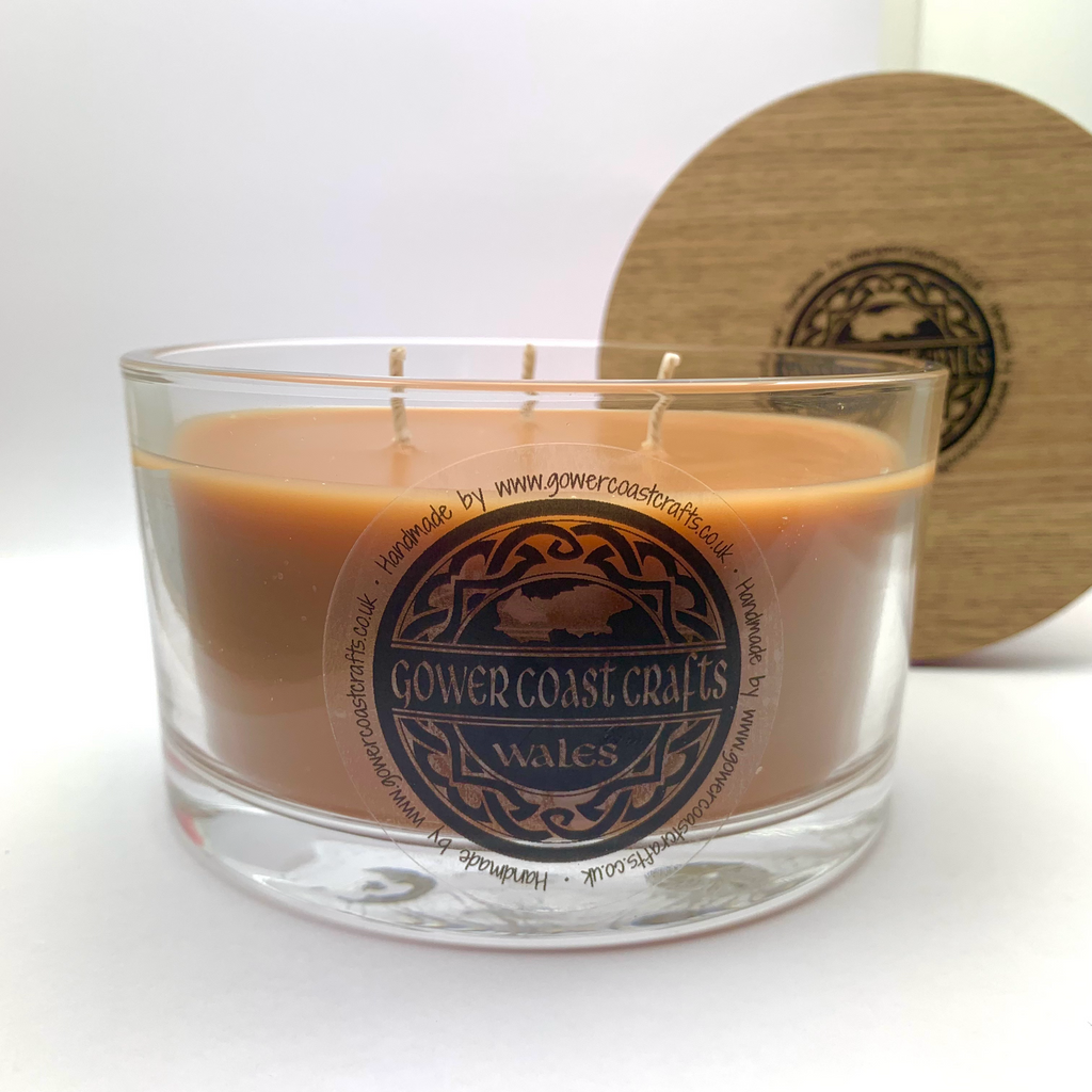 Triple Wick candle jar measures 12.5cm diameter, 7.5cm high