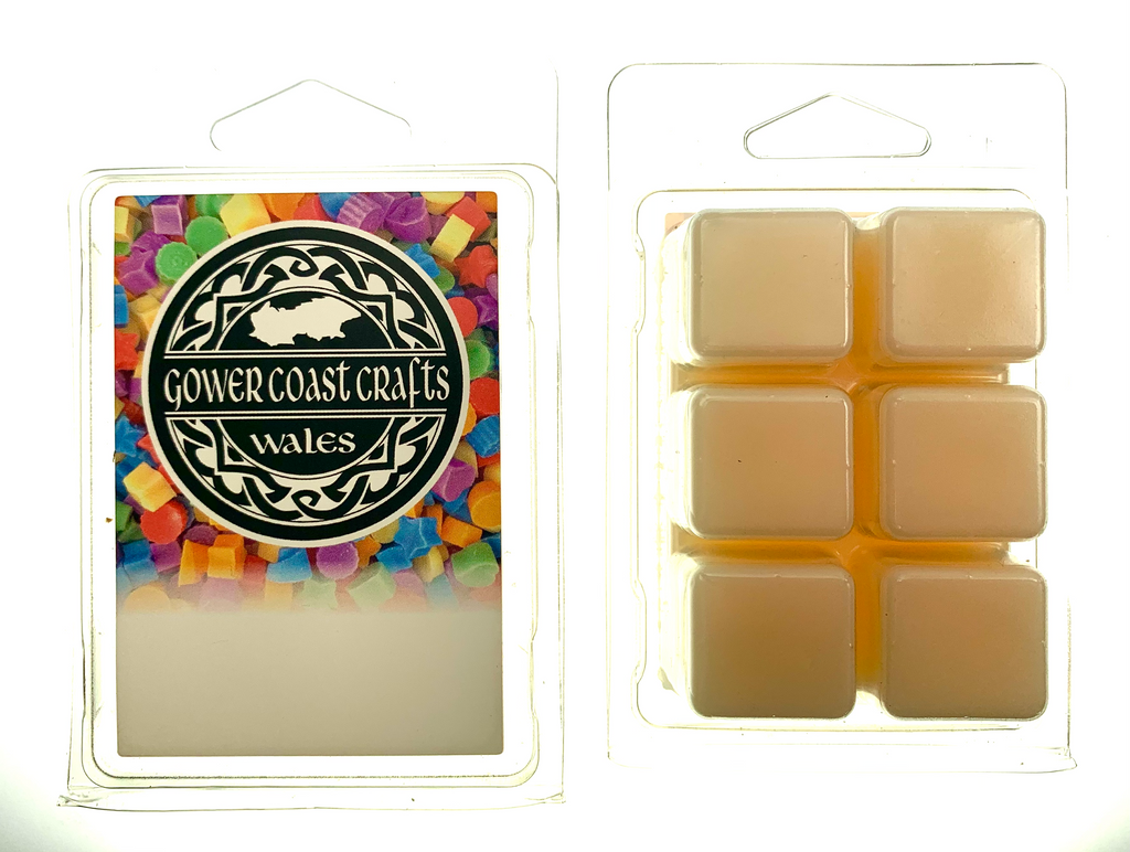 Hand-poured and cruelty free wax melt snap block containing 6 wax cubes