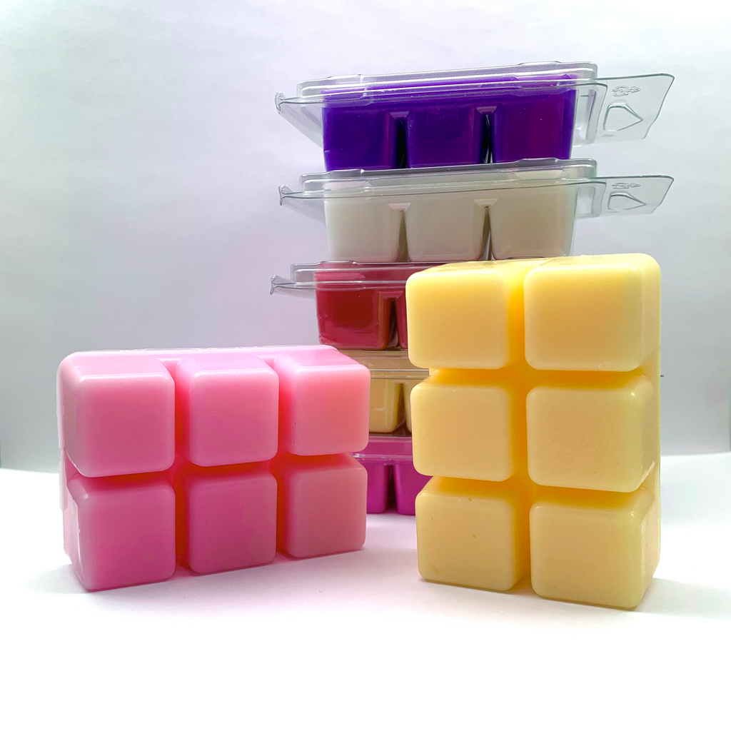 Hand-poured and cruelty free wax melt snap block containing 6 wax cubes