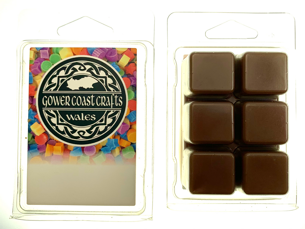 Hand-poured and cruelty free wax melt snap block containing 6 wax cubes