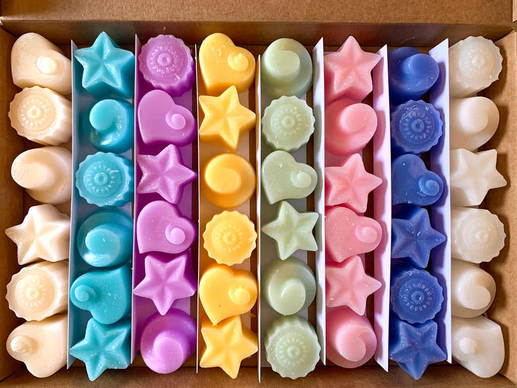 As they are hand poured there may be some variation in size Shapes are assorted. Only high quality fragrances used so the scent is long lasting.