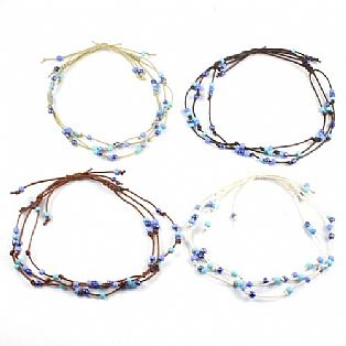 Handmade 3 String Adjustable Blue Bead Surf Anklet