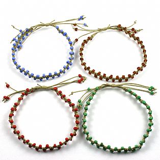 Handmade Beige Cotton Macrame and Seed Bead Adjustable Anklet