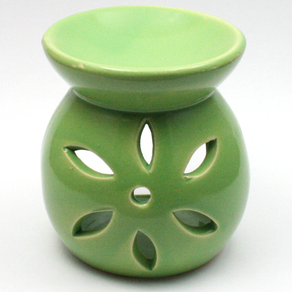 Green Small Flower Wax Warmer/Burner with a pack of 10 FREE Scented Melts