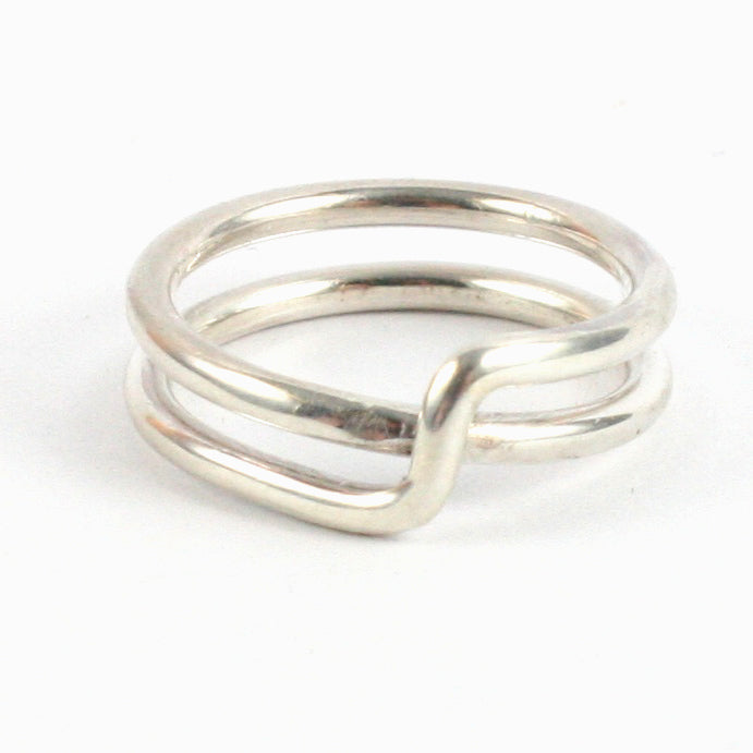 The ring is made of a single piece of 1.5mm wire which is hand shaped to form the crossover design.