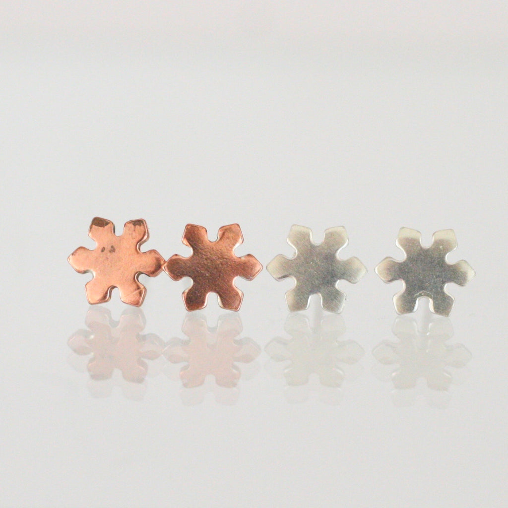 Each Stud is made from a solid silver or copper snowflake and hand soldered onto a solid silver post