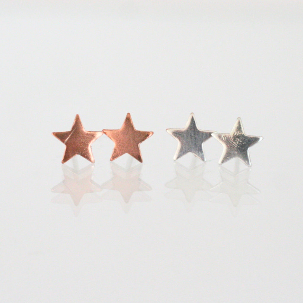 Each Stud is made from a solid silver or copper star and hand soldered onto a solid silver post