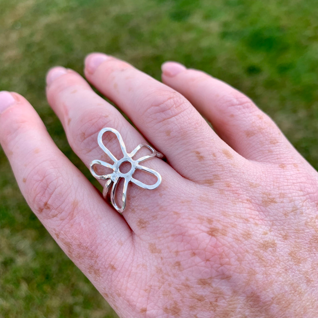 Solid Silver 1.5mm Hammered Flower Ring