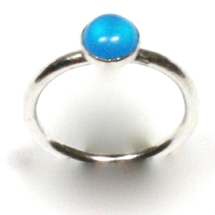 Solid Silver 1.8mm Ring with a 6mm round blue agate cabochon in a silver cup.