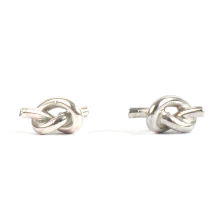 Each knot is tied from a continuous piece of wire and hand soldered onto a silver post